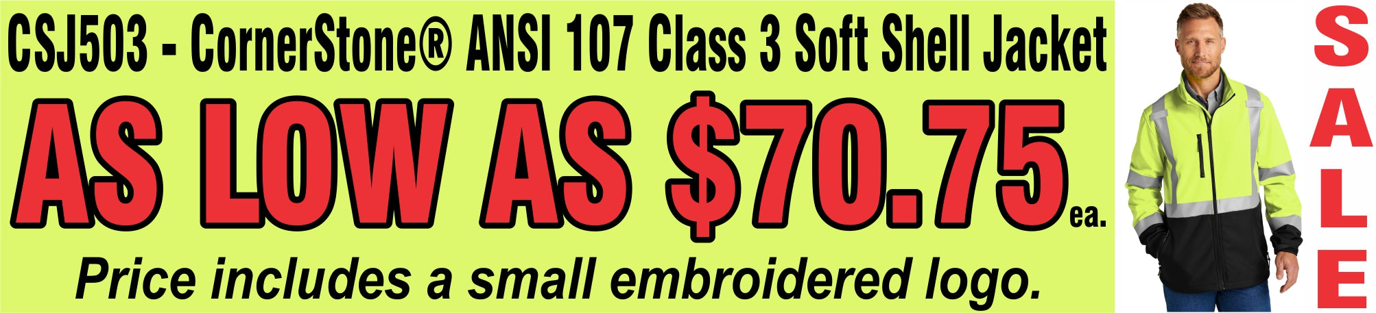 ***SALE***EMBROIDERED- CSJ503 - CornerStone® ANSI 107 Class 3 Soft Shell Jacket